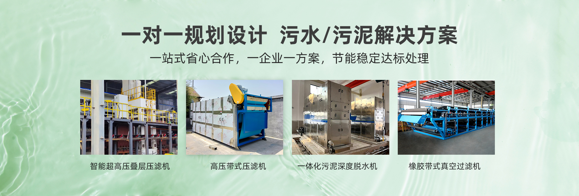 主營(yíng)產(chǎn)品:超高壓疊層壓濾機(jī)、高壓帶式壓濾機(jī)、橡膠帶式真空過濾機(jī) 、帶式濃縮脫水一體機(jī)、帶式壓濾機(jī)、一體式污泥深度脫水機(jī)、帶式果汁壓榨機(jī)、疊螺式污泥脫水機(jī)、轉(zhuǎn)鼓式濃縮脫水一體機(jī)、刮吸泥機(jī)、一體化污水處理設(shè)備、氣浮機(jī)、加藥裝置、輸送機(jī)、污泥料倉(cāng)等設(shè)備。產(chǎn)品廣泛應(yīng)用于市政污水、工業(yè)廢水、食品與飲料、畜牧養(yǎng)殖、礦山、化工、造紙、制藥等領(lǐng)域。